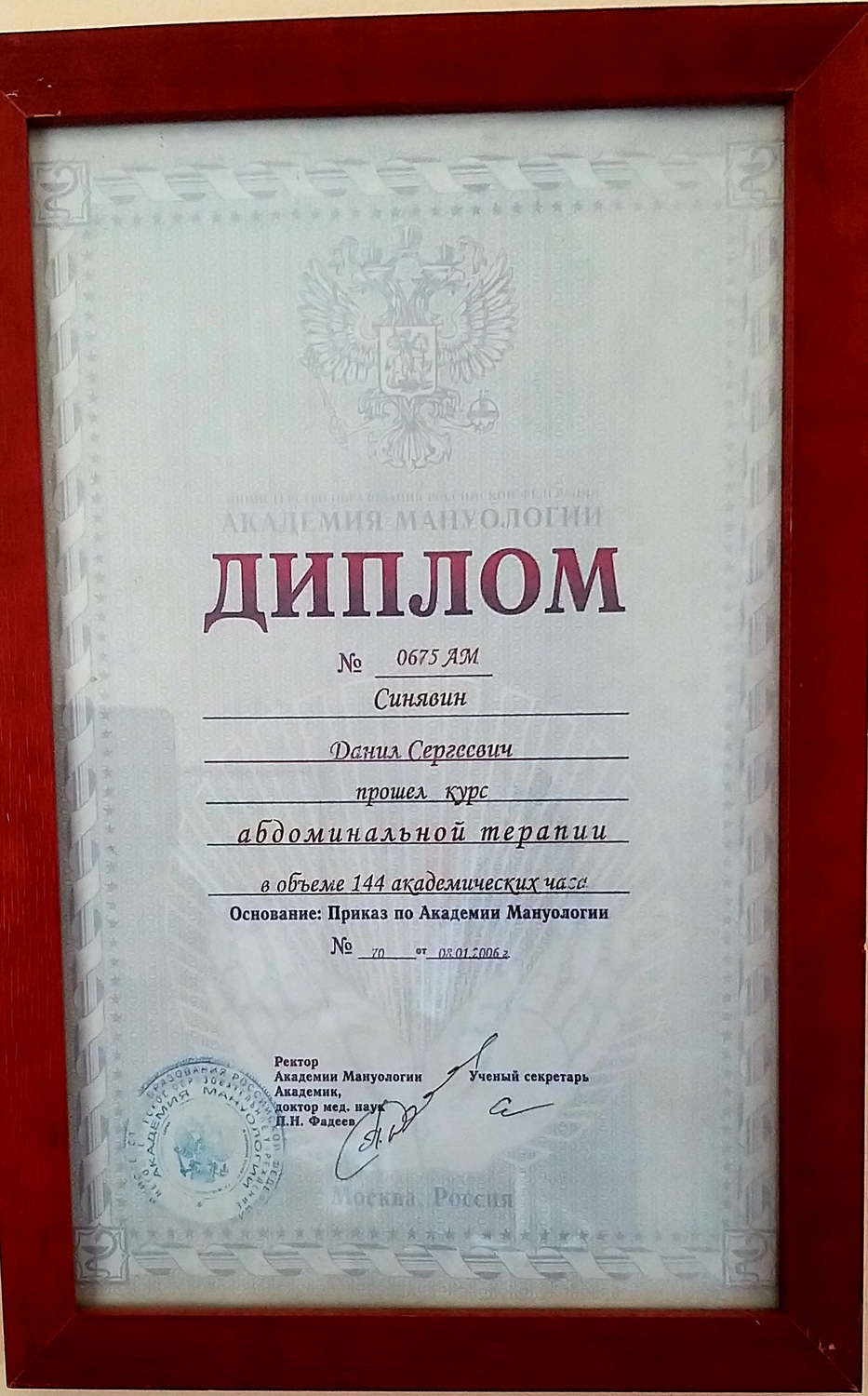 Диплом специалиста по АФК. 2006 год