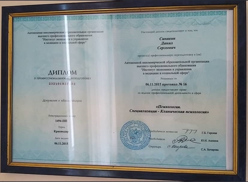 Диплом о профессиональной переподготовке. 2015 год