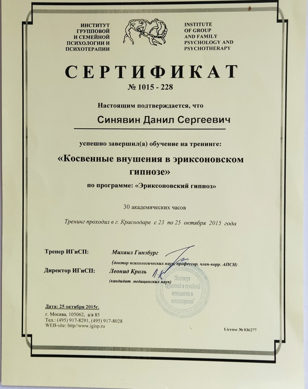 В данное время деятельность направлена на помощь людям в сфере восстановления физического здоровья и психологической реабилитации, коррекции, групповой и индивидуальной психотерапии. В науке - выбран трудный, "тернистый путь" создания нового научного направления - медицинской (клинической) философии. Уже существует медицинская (клиническая) психология, но философия существенно отличается тем, что меняет мировоззрение, глубинное миропонимание человека, в отличие от психологии, воздействующей, на поверхностные эмоции и состояния. Только в переосмыслении человек может кардинально, по-настоящему изменить в лучшую сторону все стороны своей жизни, связанные с деструктивными установками.